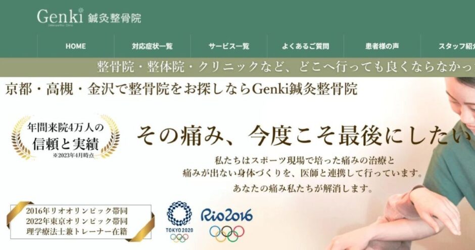 京都市において、多くの利用者から支持を集めているのがGenki鍼灸整骨院です。同院は単なるリラクゼーションではなく、痛みの根本原因にアプローチすることを重視しており、症状改善率90%以上という高い実績を公表しています。医師やトップアスリートからもその技術力が認められており、地域に根ざした信頼の厚い整骨院として知られているそうです。